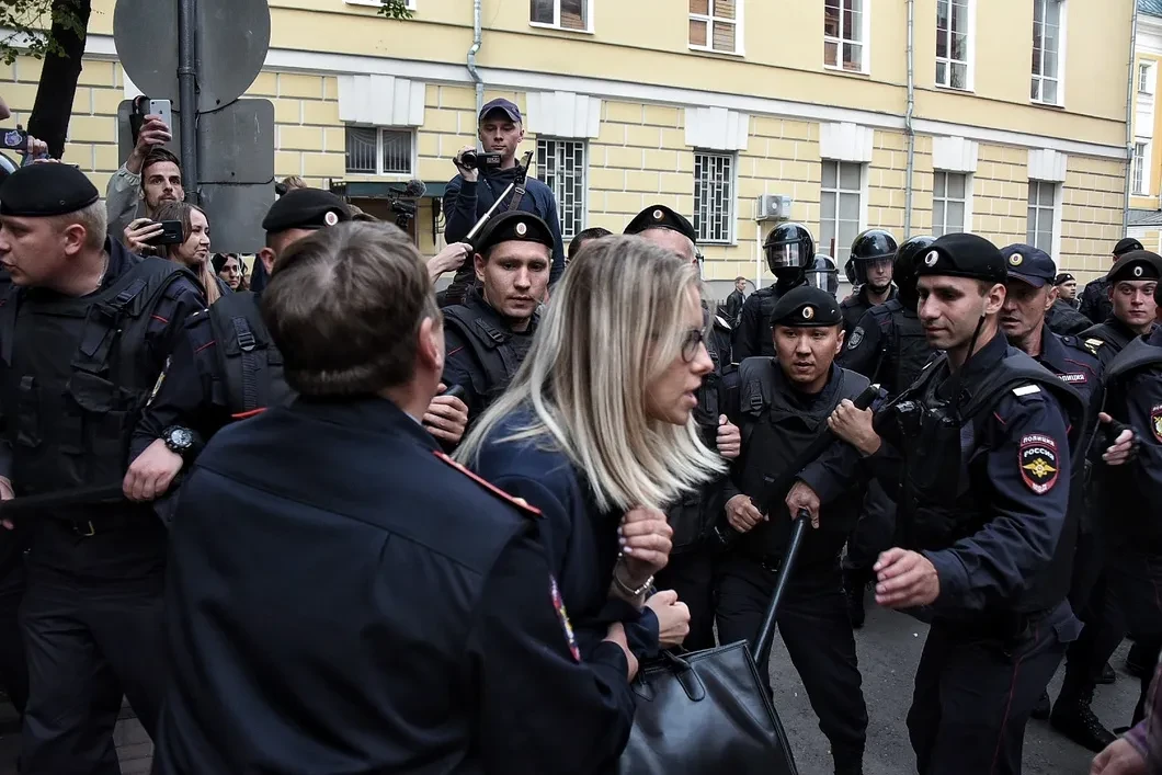 Сейчас «космонавты»озлобленно врезаются в толпу. Причем отталкивают всех, кто попадается на пути, в разные стороны. На защиту протестующих бросается Соболь. Она рукой преграждает полиции путь к людям и говорит, что их нельзя задерживать — кандидат проводит встречу с избирателями. Соболь хватают под руки, когда уже начинается давка. Илью Яшина выносят за руки и за ноги лицом вниз. Юриста ФБК Ивана Жданова уводят, сорвав с него куртку. Кандидата Юлию Галямину тоже одной из первых затолкали в автозак.