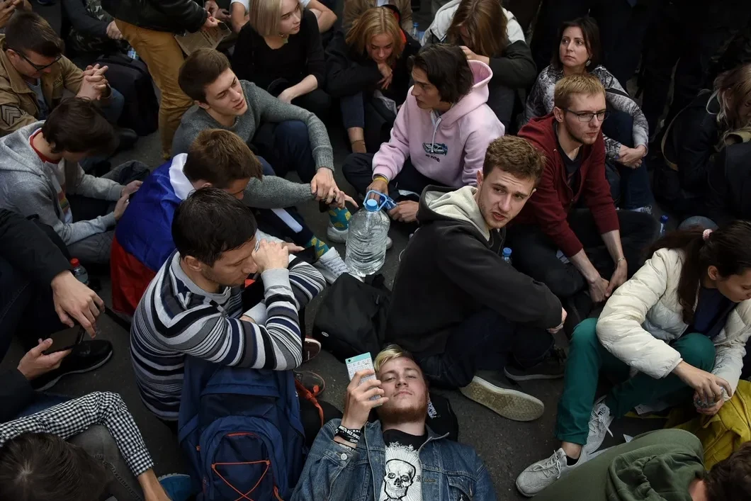 «Не мешайте проходу граждан на выборы!»,— это кто-то пародирует полицейское оповещение, которое бесконечно повторялось месяц назад, когда толпа на шествии за Ивана Голунова пыталась пройти к Петровке, 38. Соратник Навального Николай Ляскин предлагает собравшимся писать в социальные сети призывы приходить сюда, во двор, и требовать регистрации со всеми. А еще брать с собой пенки, теплую одежду и еду. Группами многие садились на землю, предлагая «сидячий протест». Соболь анонсировала ночь возле Мосгоризбиркома. Однако на тот момент полиция, видимо, не восприняла эти слова всерьез.