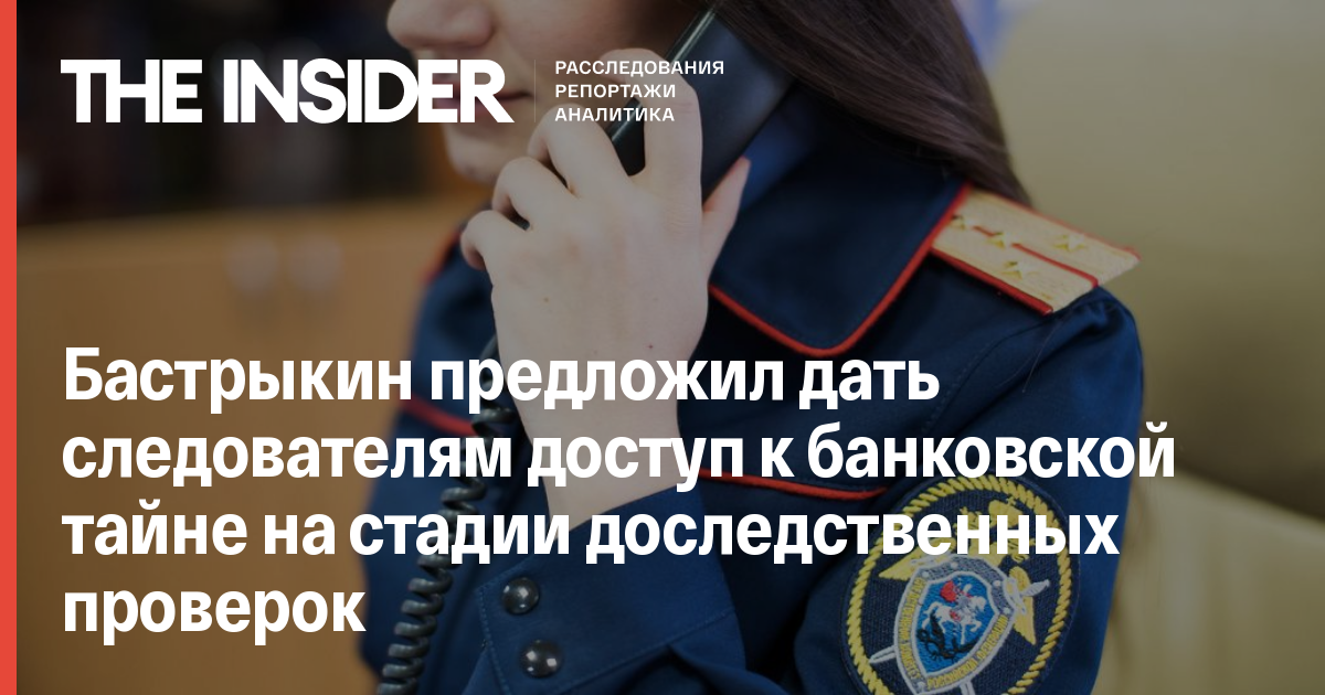 Председатель Следственного комитета Александр Бастрыкин заявил, что следователи должны иметь возможность получать информацию, относящуюся к банковской тайне, на стадии доследственных проверок, передают «Известия».