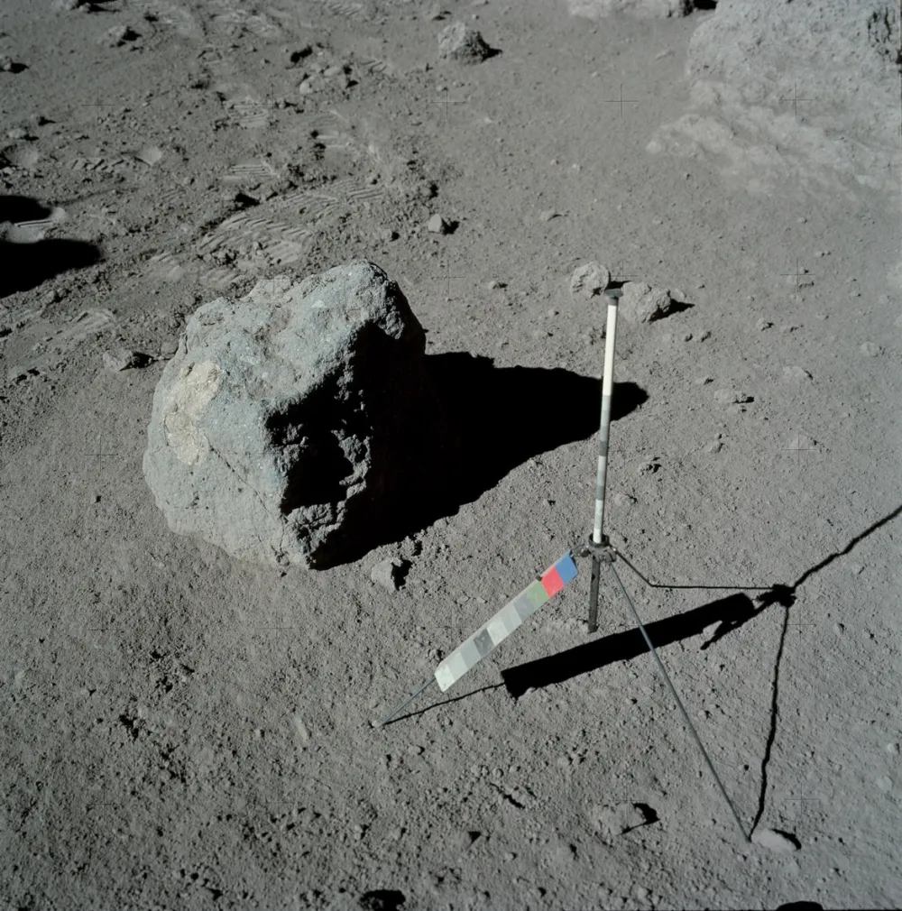 Во время второй и третьей вылазок астронавты занимались осмотром окрестностей и сбором образцов. Среди прочего, они отобрали для лабораторных исследований образец № 15415 массой 269 г, который является фрагментом ранней лунной коры возрастом 4,15 млрд лет. Его назвали Камнем Творения (Genesis Rock)14.