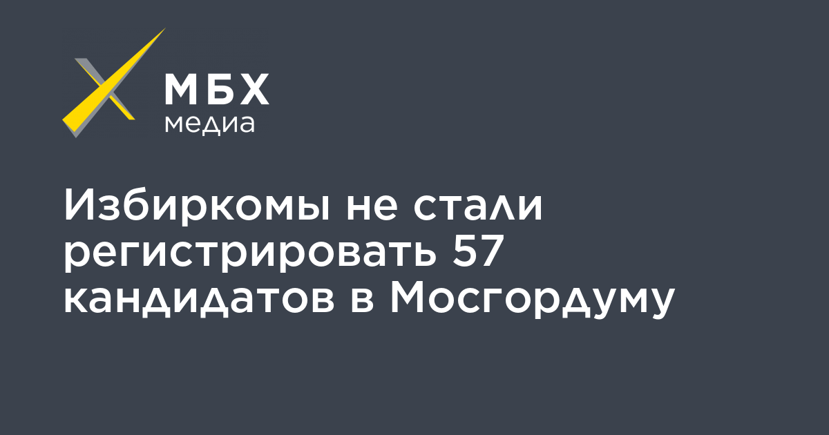 Окружные избирательные комиссии отказались зарегистрировать в общей сложности 57 кандидатов в депутаты Мосгордумы, сообщает «Интерфакс» со ссылкой на главу Мосгоризбиркома Валентина Горбунова.
