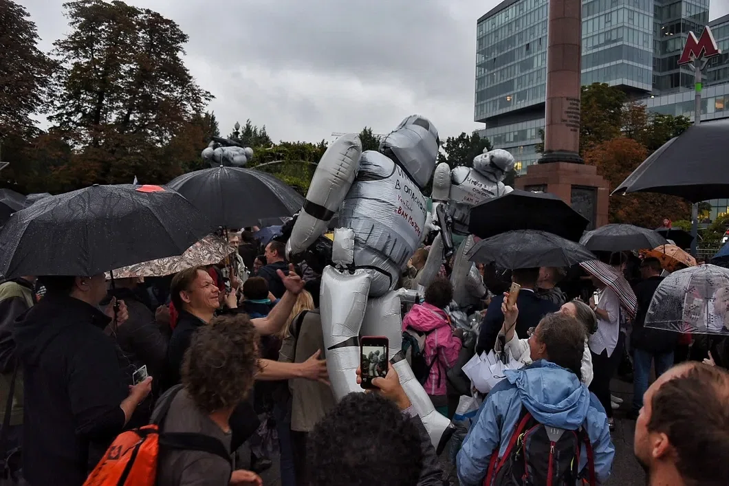 Появились надувные «штурмовики» из «Звездных войн»: люди их кидают над собой, перебрасываются и скандируют: «Каждый день!»