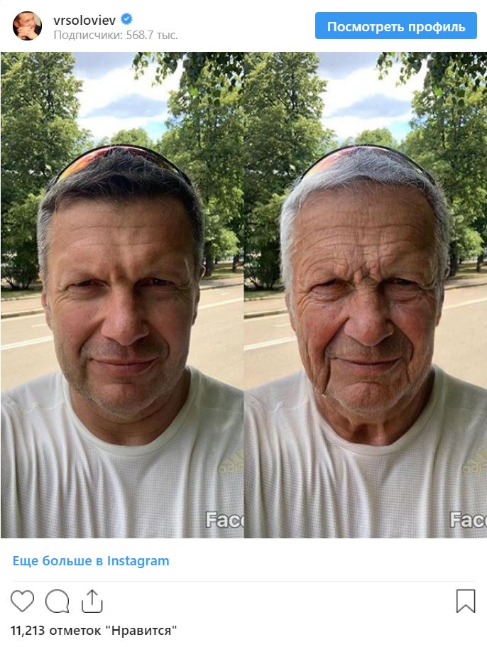 - Новую волну популярности запустили знаменитости. Все началось со «звезд» из стран Ближнего Востока и Португалии, спустя несколько дней приложение добралось до российских актеров, певцов и телеведущих. Состарить себя можно в два клика: для этого надо просто выбрать настройку «Возраст», а затем — нажать на фильтр «Пожилой».