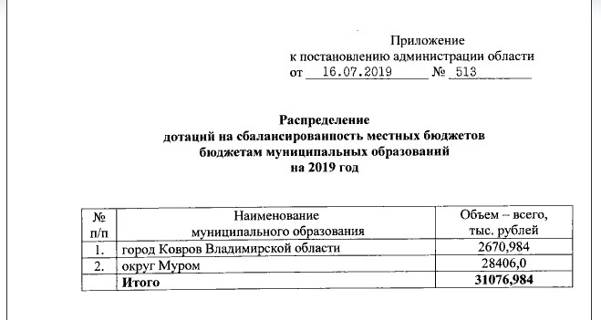 Мурому направлено 28 млн 406 тысяч рублей, Коврову – 2 млн 670 тысяч 984 рубля. Суммы распределены пропорционально стоимости ремонтных работ, которые необходимо провести.