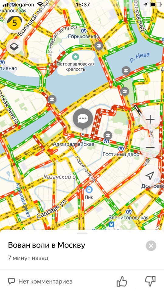 В «разговорчиках» на «Яндекс.Картах» водители винят в пробках визит президента РФ.