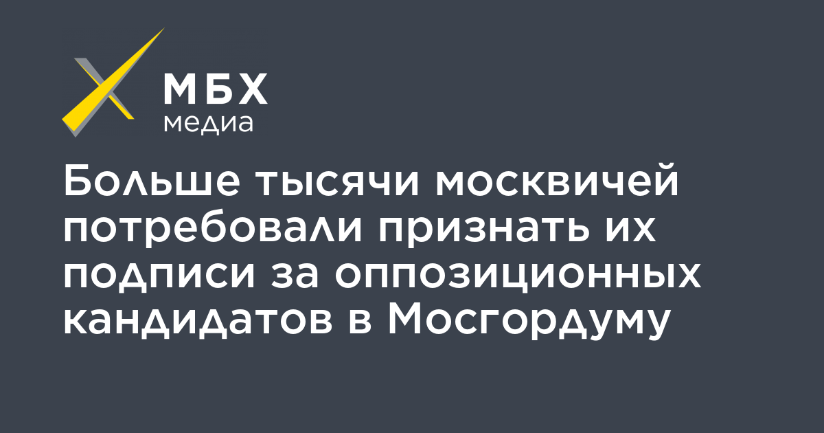 Кандидаты в депутаты Мосгордумы, которых сняли с выборов из-за «брака» в подписях, собрали больше тысячи заявлений от жителей Москвы с требованием признать их подписи действительными, сообщает «Коммерсант» со ссылкой на 11 незарегистрированных оппозиционных кандидатов.