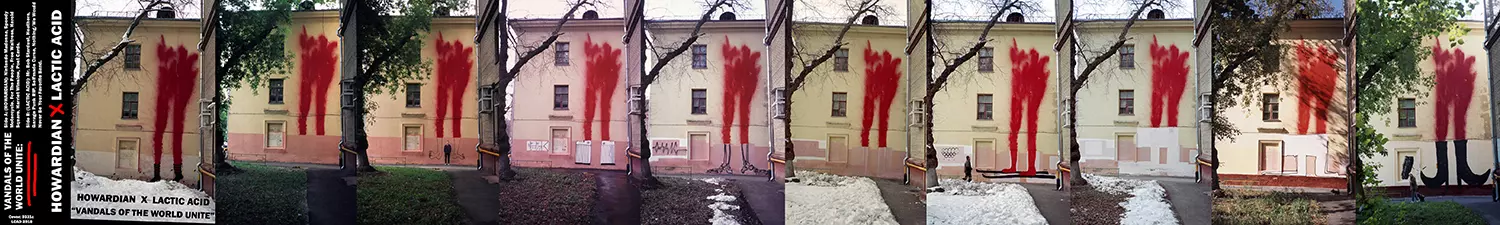 Сегодня в Екатеринбурге рабочие начали укладывать асфальт поверх работы художника Покраса Лампаса, которую тот сделал в рамках фестиваля уличного искусства «Стенограффия». Общая площадь произведения художника — 6600 кв. метров, он делал ее три дня с 20-ю волонтерами. То, что работа выполнена в рамках совершенно легального и согласованного международного фестиваля, проходящего не первый год, коммунальщиков не остановило. Впрочем, война между ними и граффитчиками идет в России уже много лет. Мы решили вспомнить, какие произведения уличного графического искусства мы уже потеряли.