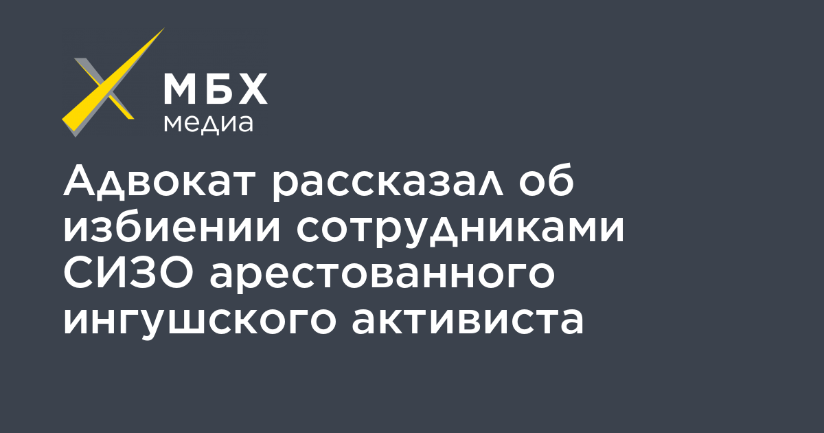 Арестованного ингушского активиста Багаудина Мякиева, который находится в СИЗО Нальчика в Кабардино-Балкарии по делу о нападении на полицейских (часть 2 статьи 318 УК) во время митинга в Магасе, избили сотрудники изолятора. Об этом сообщил «МБХ медиа» его адвокат Геннадий Пазов.