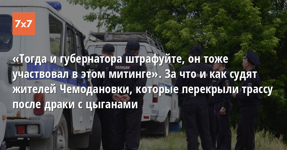 — Я пытался объяснить судье, что пришел на народный сход поговорить с губернатором. Я не требовал выселять цыган, я с ними нормально жил. Просто пришел поговорить о законности строительства их домов. Но судья показал фотографию, где я стою с губернатором на фоне сотен людей, и назначил мне десять тысяч рублей штрафа за участие в несанкционированном митинге. Я говорю: «Тогда и губернатора штрафуйте, он тоже участвовал в этом митинге». Однако сотрудники полиции ответили, что губернатор, наоборот, пытался его предотвратить, — рассказал «7x7» один из оштрафованных, попросив не указывать его фамилию.