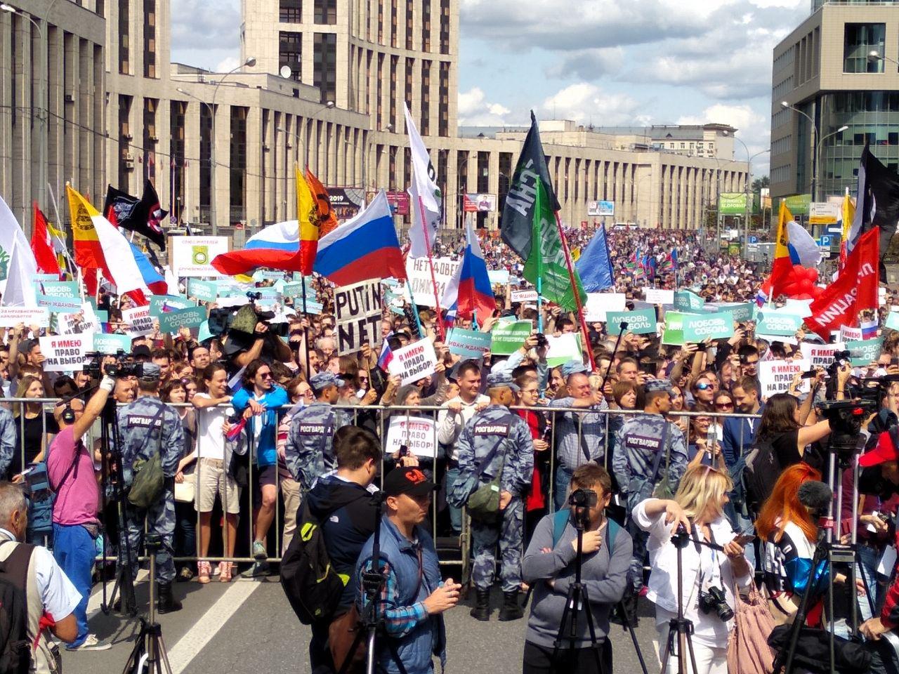 20 июля в Москве на проспекте Сахарова проходит митинг в поддержку оппозиционных кандидатов, которым было отказано в регистрации на выборах в Мосгордуму.