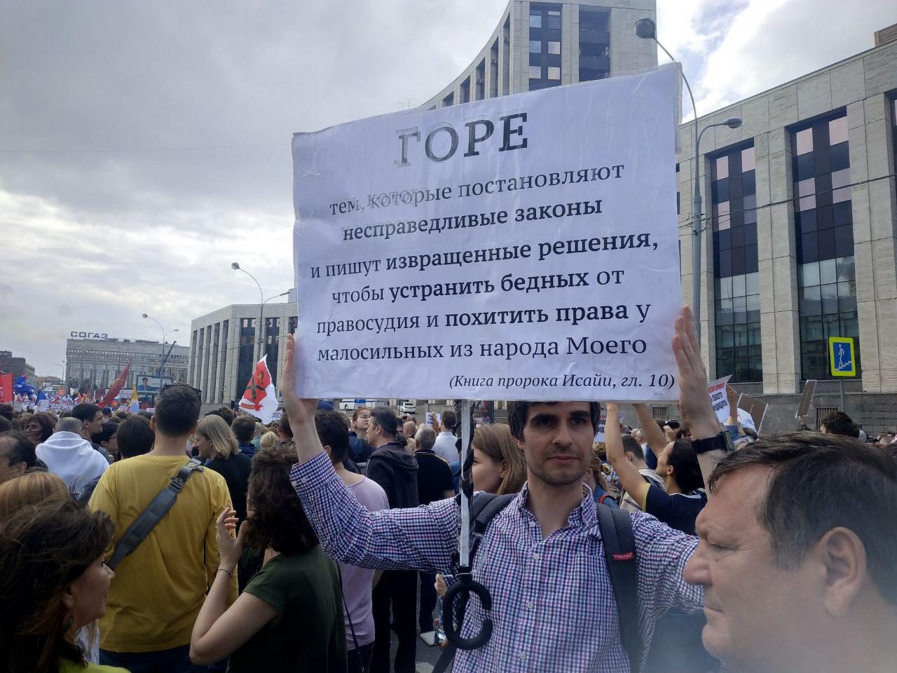 Аналогичная акция протеста состоялась в Москве 14 июля, на нее вышли около тысячи человек. Полиция объявила, что акция не согласована, и начала жестко вытеснять протестующих из двора у здания Мосгоризбиркома. Были задержаны кандидаты Яшин, Соболь, всего 38 человек.