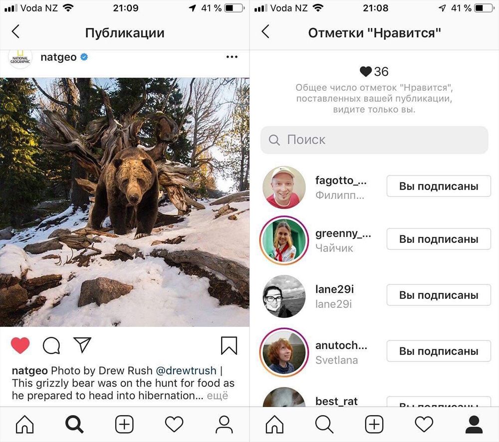 Россиянка, которая живет в Новой Зеландии, рассказала «Медузе», что под ее фото теперь указано, что оно нравится какому-то одному подписчику, остальные скрыты под формулировкой «и другим». Если нажать на эту надпись, то появится список тех, кто поставил лайк. Под чужими фото и видео она может поставить лайк, но не видит ни одного пользователя, который тоже лайкнул пост.