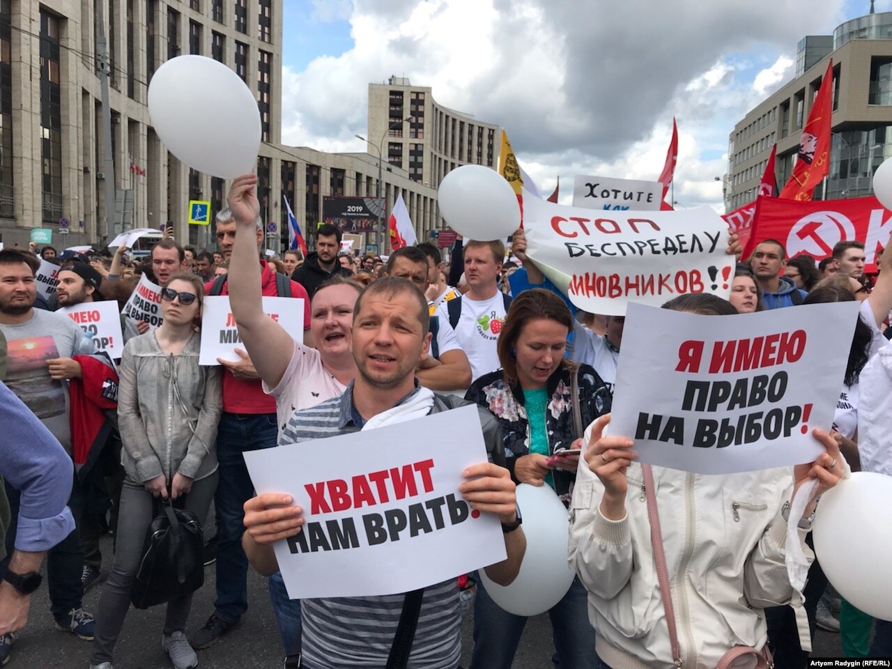 В субботу в центре Москвы на проспекте Сахарова прошёл согласованный с властями митинг в поддержку независимых кандидатов, которым было отказано в регистрации на выборах в городскую думу. По данным "Белого счётчика", на акцию пришло 22 тысячи человек, МВД насчитало 12 тысяч.