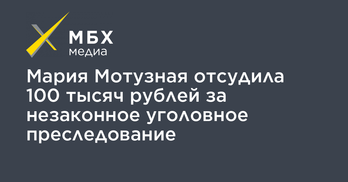 Ранее Мотузная подала иск к министерству финансов, потребовав 1 млн рублей в качестве компенсации морального вреда за необоснованное уголовное преследование. Ранее Мотузная сообщала «МБХ медиа», что планирует требовать и компенсации ущерба психическому здоровью.