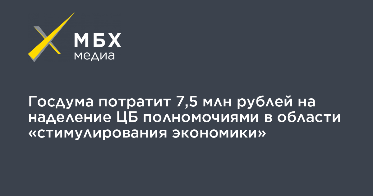 Госдума потратит 7,5 млн рублей на наделение ЦБ полномочиями в области «стимулирования экономики»