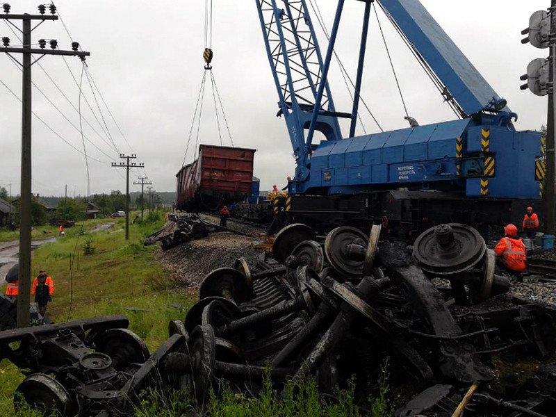 Сход 23 вагонов с углем поезда Воркута - Череповец произошел 22 июля из-за размыва пути. Всего железнодорожный состав насчитывал 54 вагона. В результате инцидента никто не пострадал, повреждены железнодорожные пути, проезд закрыт. Сообщалось о задержке как минимум 14 поездов.