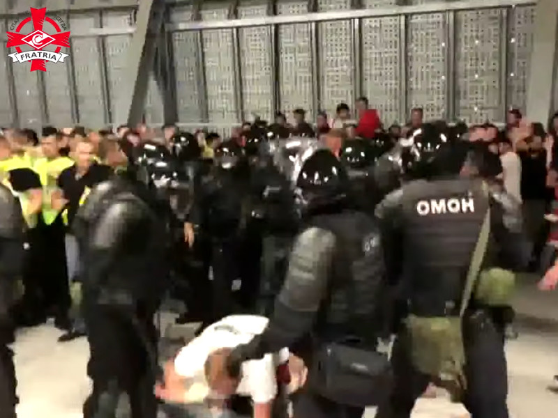 После завершения игры болельщики "Спартака" не смогли покинуть стадион и были блокированы сотрудниками безопасности в подтрибунных помещениях. Часть фанатов попыталась прорваться за оцепление, в ответ сотрудники полиции пустили в ход резиновые дубинки.