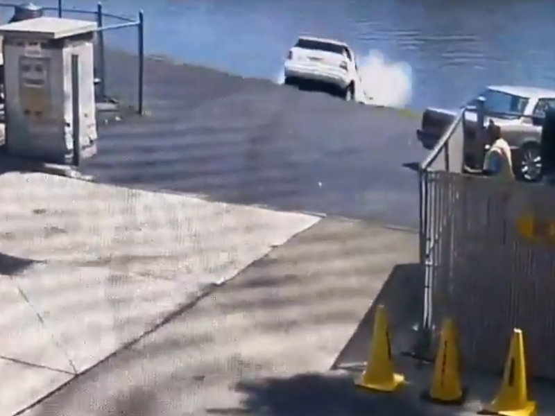 Необычный дорожный инцидент произошел на минувшей неделе в американском штате Нью-Джерси, где белый внедорожник Mercedes-Benz упал в реку, выехав из ворот автомойки.