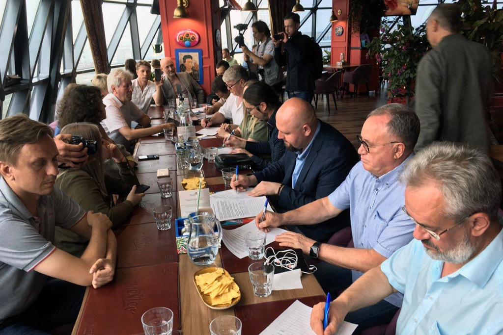 После церемонии подписания собравшиеся решили обсудить, что делать дальше. Алексей Мазур предложил утвердить формат дебатов. На что бывший вице-губернатор Виктор Козодой, вероятно, припомнив свой чиновничий опыт, предложил создать «рабочую группу», которая и предложит кандидатам формат дискуссии. Сошлись и в том, что действующий мэр Анатолий Локоть (КПРФ), скорее всего, не будет публично дебатировать.