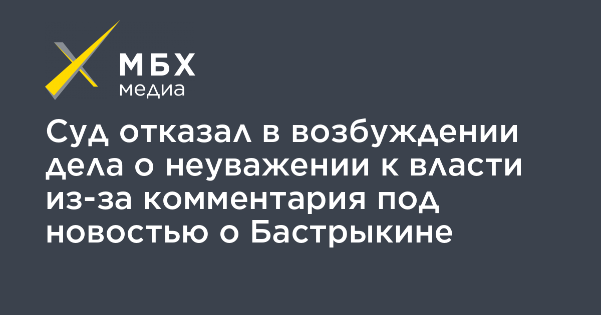 Шарьинский районный суд Костромской области отказал в возбуждении дела о неуважении к власти (часть 3 статьи 20.1 КоАП) из-за комментария во «ВКонтакте» под новостью о главе СК Александре Бастрыкине, в котором пользователь якобы оскорбил участников группы «Коалиция следователей». Информацию «МБХ медиа» обнаружило на сайте суда.