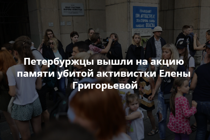 В ночь на 21 июля в Петербурге убили гражданскую активистку Елену Григорьеву. Она участвовала в акциях в защиту ЛГБТ, против пыток и за возвращение Крыма Украине. Тело женщины нашли неподалеку от ее дома, Следственный комитет возбудил уголовное дело.