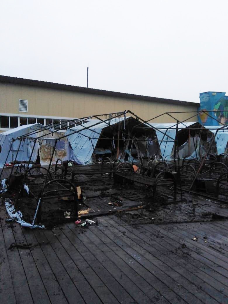 По словам одного из очевидцев случившегося, пожар начался в палатке, которая отапливалась тепловой пушкой. Скорее всего, сначала загорелась одежда, которую повесили на пушку посушиться.