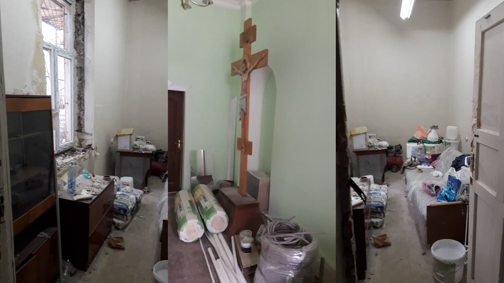 «Ситуация очень критическая. Все происходило, когда я не был в Крыму. Согласно решению суда, в 2017 году, было изъято 110 квадратных метров площади первого этажа. Она была опечатана и находилась под замком. Но вместе с тем было описано и сохранялось церковное имущество: кресла, иконы, мебель, ковры, посуда, столы, столовые принадлежности. Сейчас это все разграблено и разломано. Часть вещей я увидел на улице на свалке. Где делись остальные вещи – я не знаю», – сообщил священнослужитель.