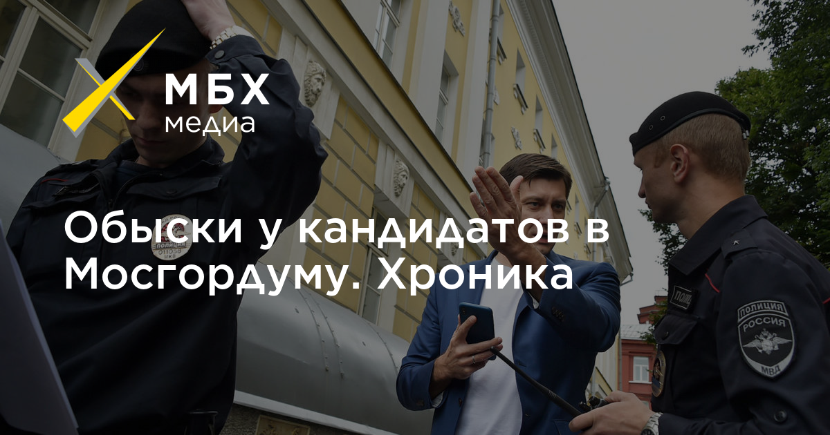 Сотрудники полиции пришли с обыском к политикам Дмитрию Гудкову, Александру Соловьеву и Ивану Жданову и другим кандидатам в депутаты Мосгордумы и их соратникам. Мы ведем хронику событий.
