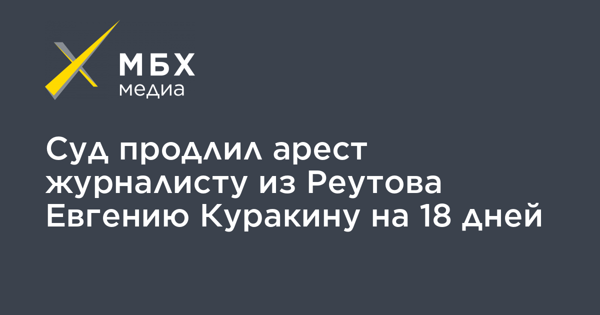 Реутовский городской суд продлил на 18 дней – до 7 августа – арест журналисту Евгению Куракину, обвиняемому в мошенничестве. Об этом «МБХ медиа» сообщила адвокат Ирина Яценко.