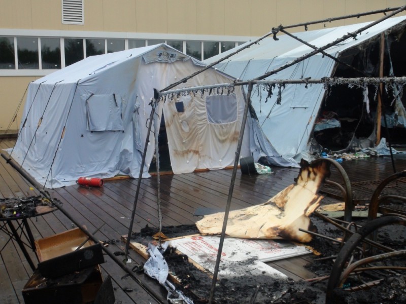 По делу о пожаре в детском палаточном лагере в Хабаровском крае задержан сотрудник МЧС Эдуард Новгородцев. Как сообщается на сайте Следственного комитета России, в отношении него возбуждено уголовное дело о халатности (ч. 3 ст. 293 УК). Максимальное наказание, предусмотренное этой статьей, составляет семь лет лишения свободы.