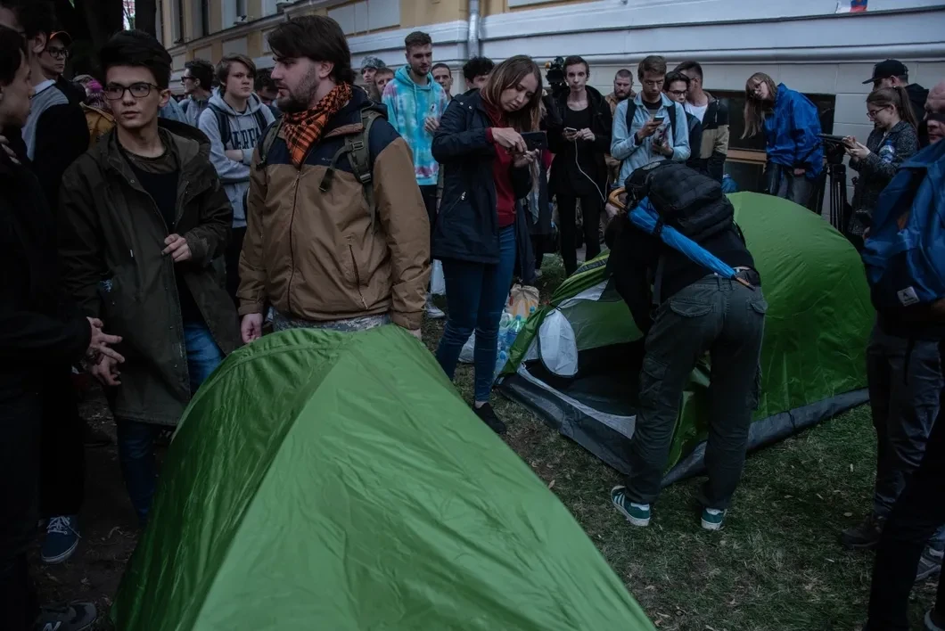 Тогда люди впервые вышли на «встречу с кандидатами» в Новопушкинский сквер, дошли до здания московской мэрии (постучав в ее дверь), а затем до Мосгоризбиркома. Протестующие разбили палаточный лагерь — хотели остаться там на ночь вместе с объявившей голодовку Любовью Соболь, не допущенной до выборов в Мосгордуму. Полиция жестко разогнала участников, задержав 38 человек — среди них были сами кандидаты.