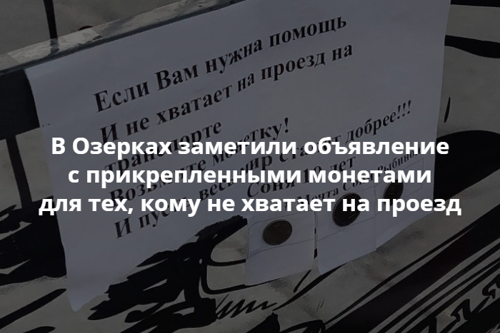 «Если вам нужна помощь и не хватает на проезд на транспорте возьмите монетку! И пусть весь мир станет добрее!» — говорится в объявлении.