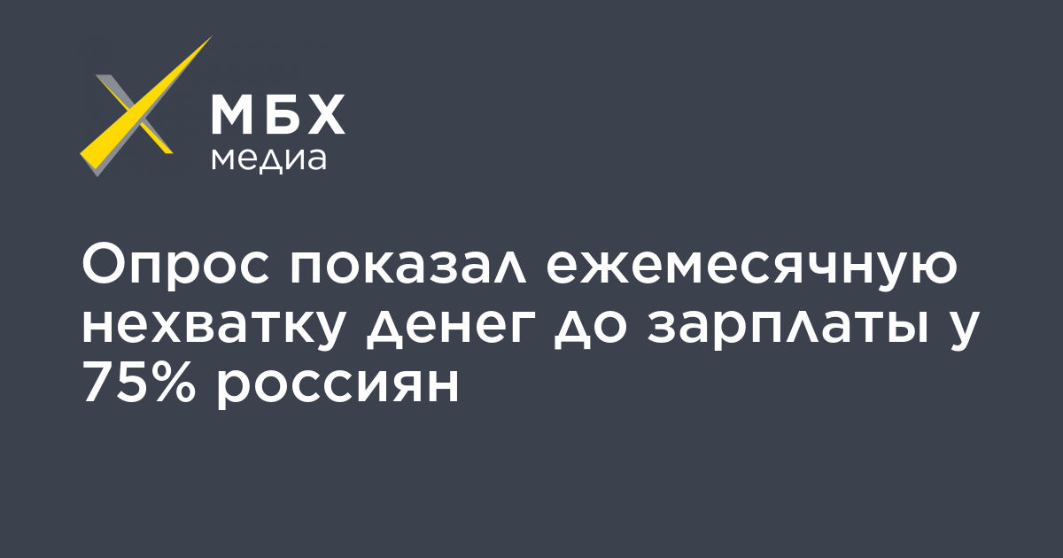 Опрос показал ежемесячную нехватку денег до зарплаты у 75% россиян