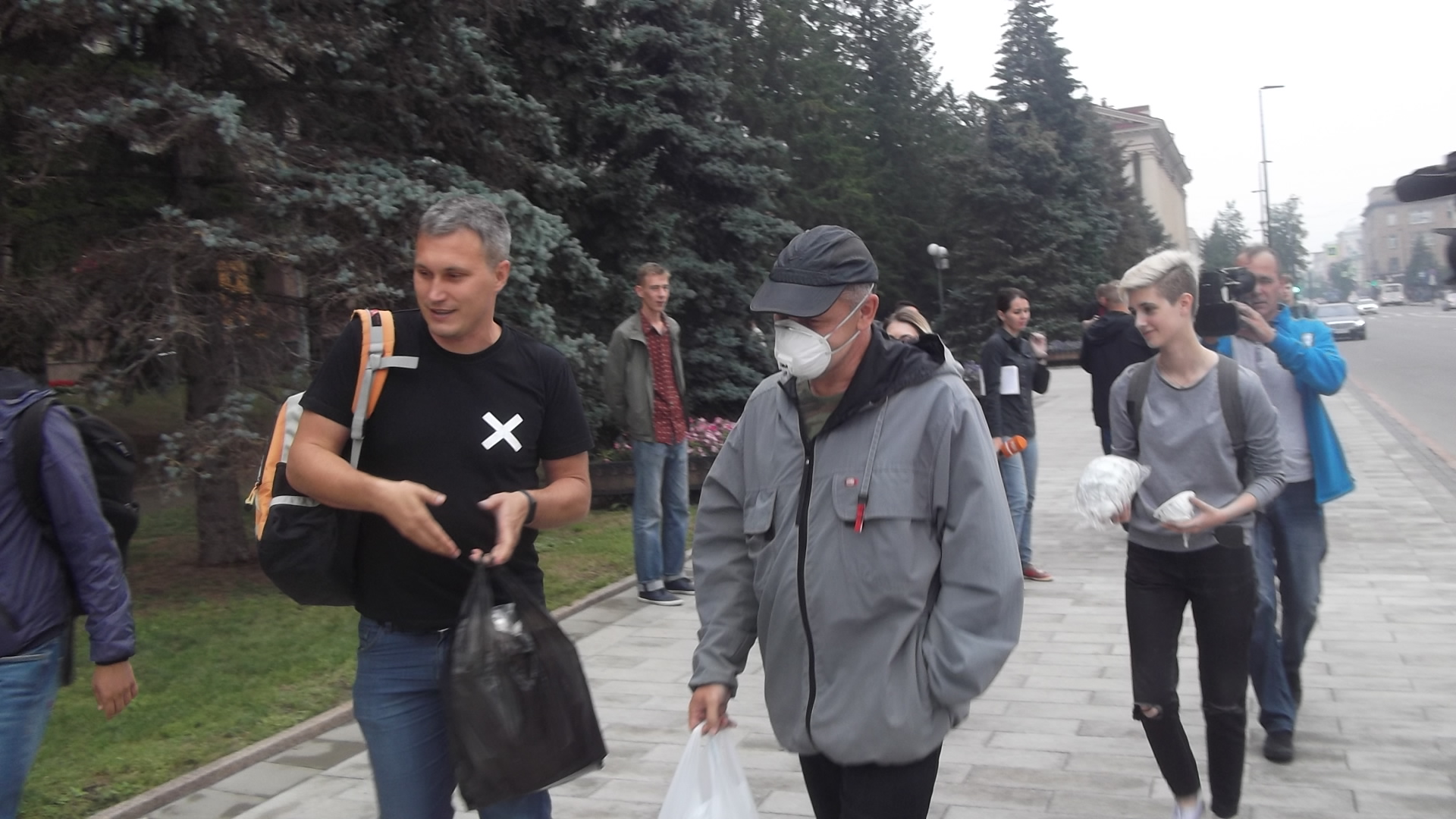 "Акция не политическая, это не пикет, не митинг. Как видите, здесь никаких плакатов нет. Если угодно, мы помогаем горожанам выполнить рекомендации Роспотребнадзора: это учреждение ведь советовало защищаться от смога масками и респираторами. Вот решили помочь красноярцам, – говорит активист Евгений Ходос. – Потом мы в этих масках просто прогуляемся по центру, в районе краевого правительства и регионального заксобрания. Может быть, тогда чиновники всё-таки вспомнят, что с самими пожарами неплохо бы что-то начать делать и ввести режим НМУ, как это сделали в соседних регионах из-за дыма от красноярских горящих лесов. А у нас, видимо, просто перед Москвой не хотят "позориться": ведь ввести режим НМУ – значит признать, что в Красноярске неблагополучно с экологией".