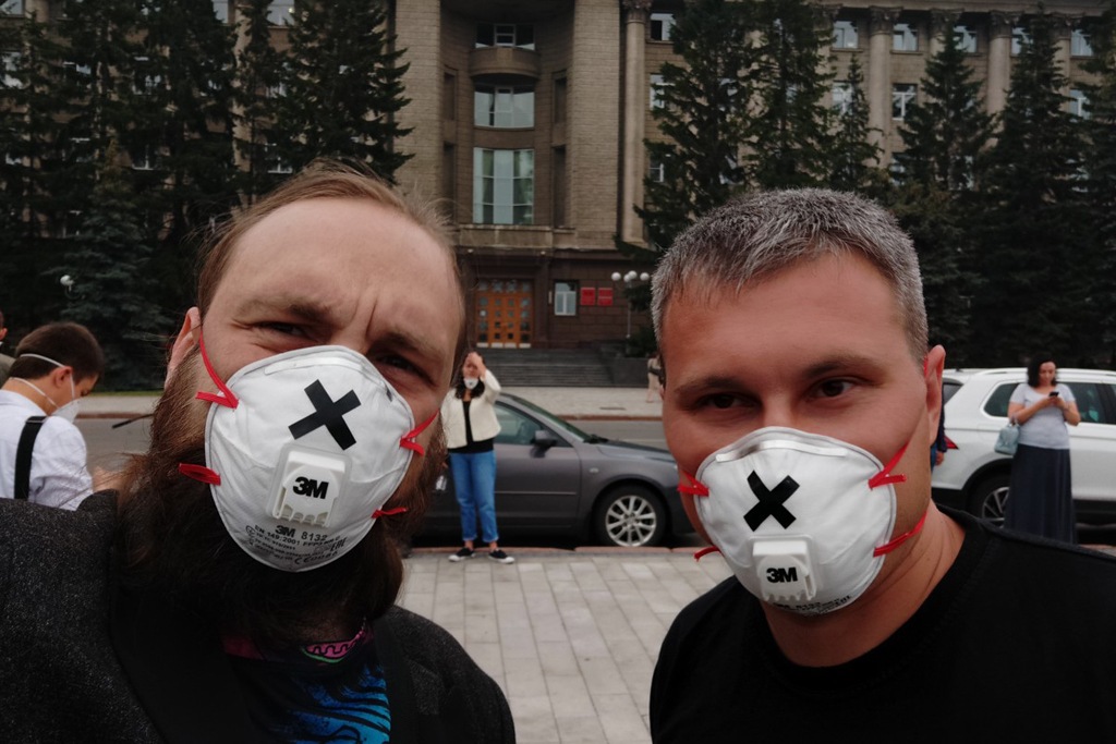 Жители вышли на улицу в масках, респираторах и других средствах защиты в Красноярске 25 июля, сообщил Тайге.инфо лидер движения «За чистое небо» Андрей Сковородников-Эрлих. Прогулка проходит в районе краевого правительства и заксобрания.