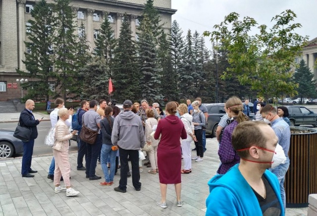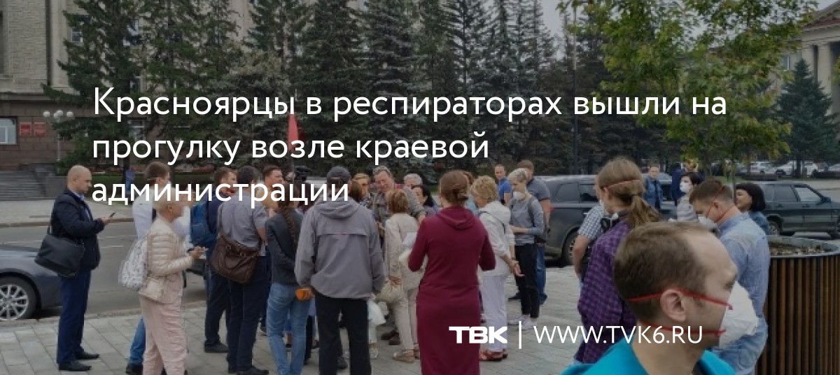 Красноярцы в респираторах вышли на прогулку возле краевой администрации
