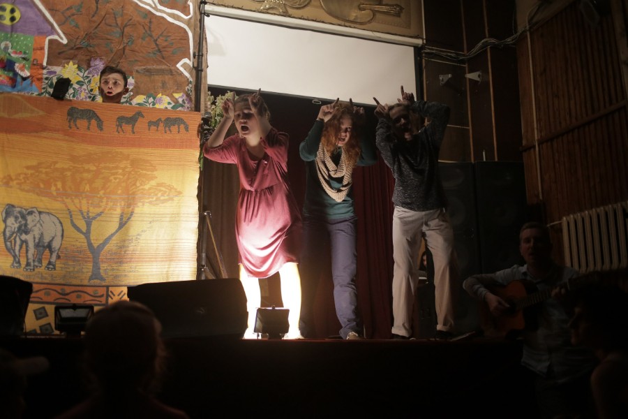 Теперь мы приезжаем в Кадников дважды в год. Сначала работа идет с социальными учреждениями: показываем представления, учим, проводим мастер-классы, на которых играем, рисуем и поем. Студенты сами выбирают репертуар — в зависимости как от собственных желаний, так и от возраста наших зрителей. Выбирается материал, который одновременно вдохновляет учащихся на творчество и подходит для программы, для разных групп детей. Например, в этом году мы показывали сказку про собачку Соню и взрослую постановку по мотивам сборника Хулио Кортасара «Конец игры».