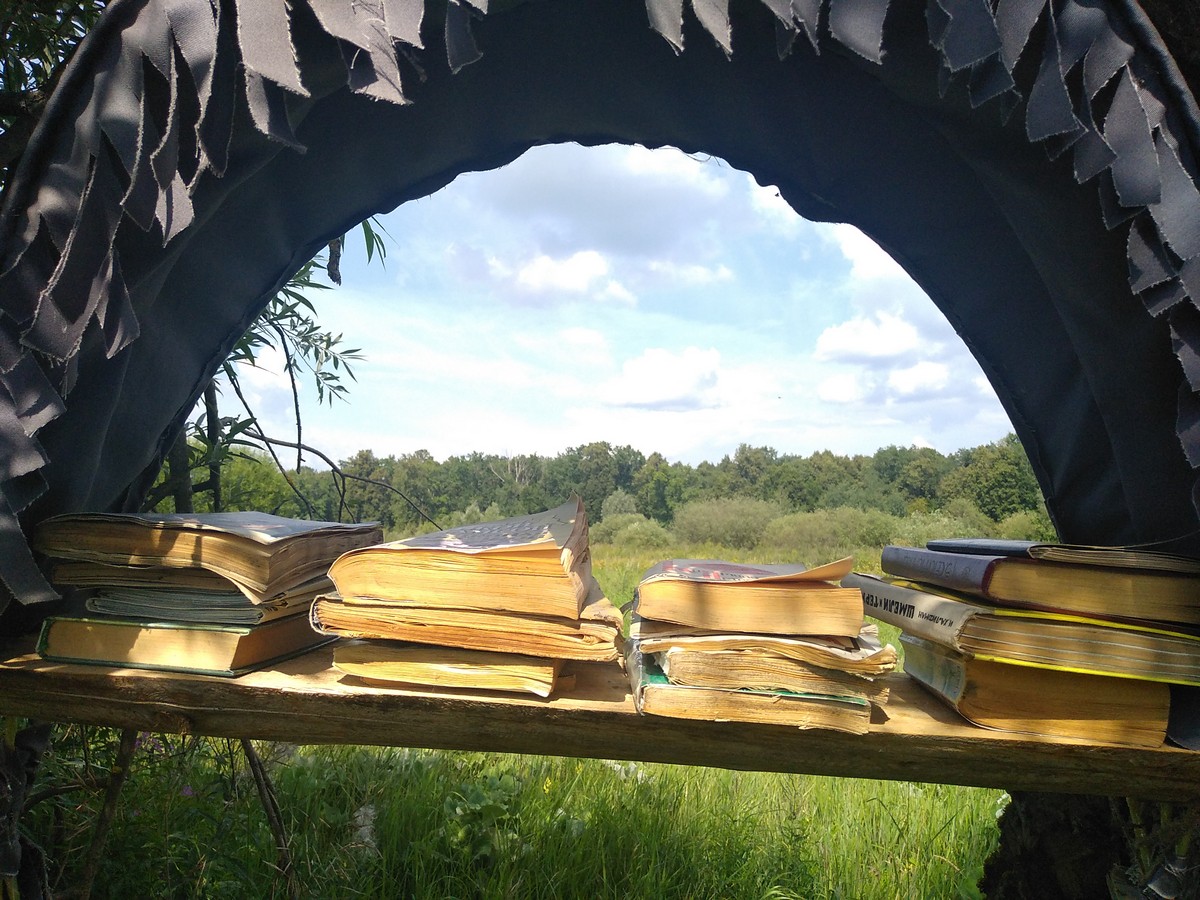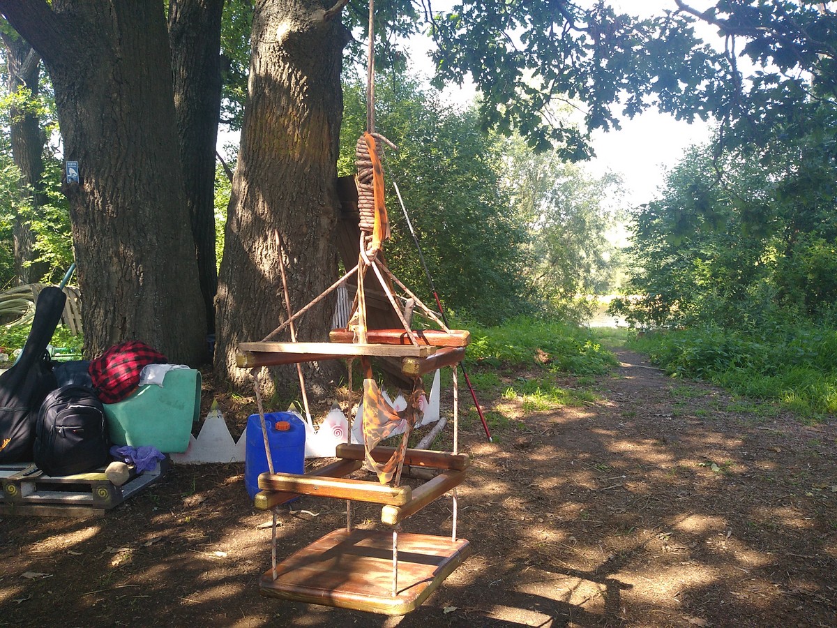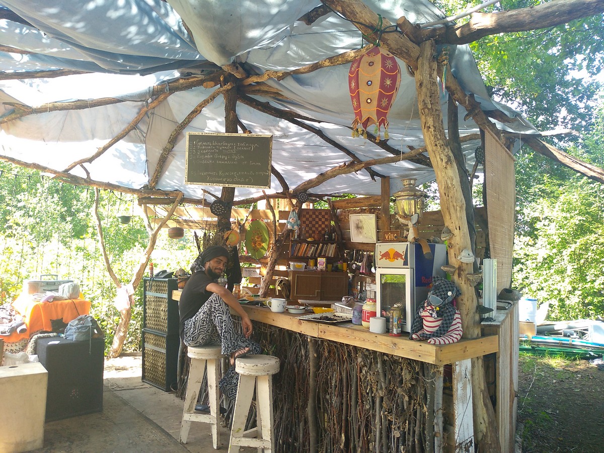 Сейчас там идет подготовка к фестивалю “Дубки”, который намечен на начало августа. В парке разбит небольшой палаточный лагерь, есть welcome center, куда вновь прибывшие могут обратиться за информацией, достраивается лекторий, есть небольшая библиотека под открытым небом.
