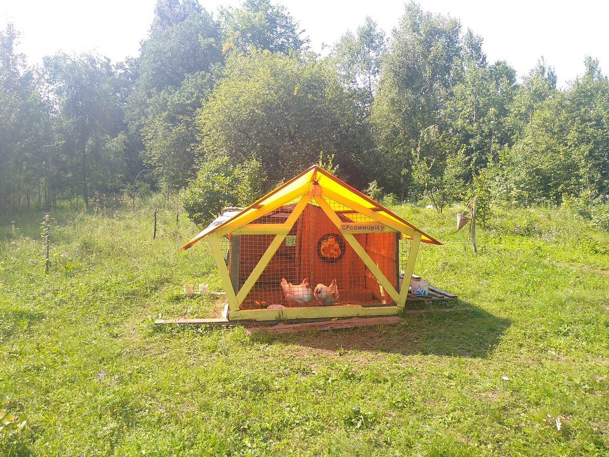 Весь органический мусор перерабатывается. Съедобные для животных и птиц отходы идут на корм собакам и курам, которых специально привезли и разместили в вольере. Во время съемки куры с удовольствием доедали арбузные корки.