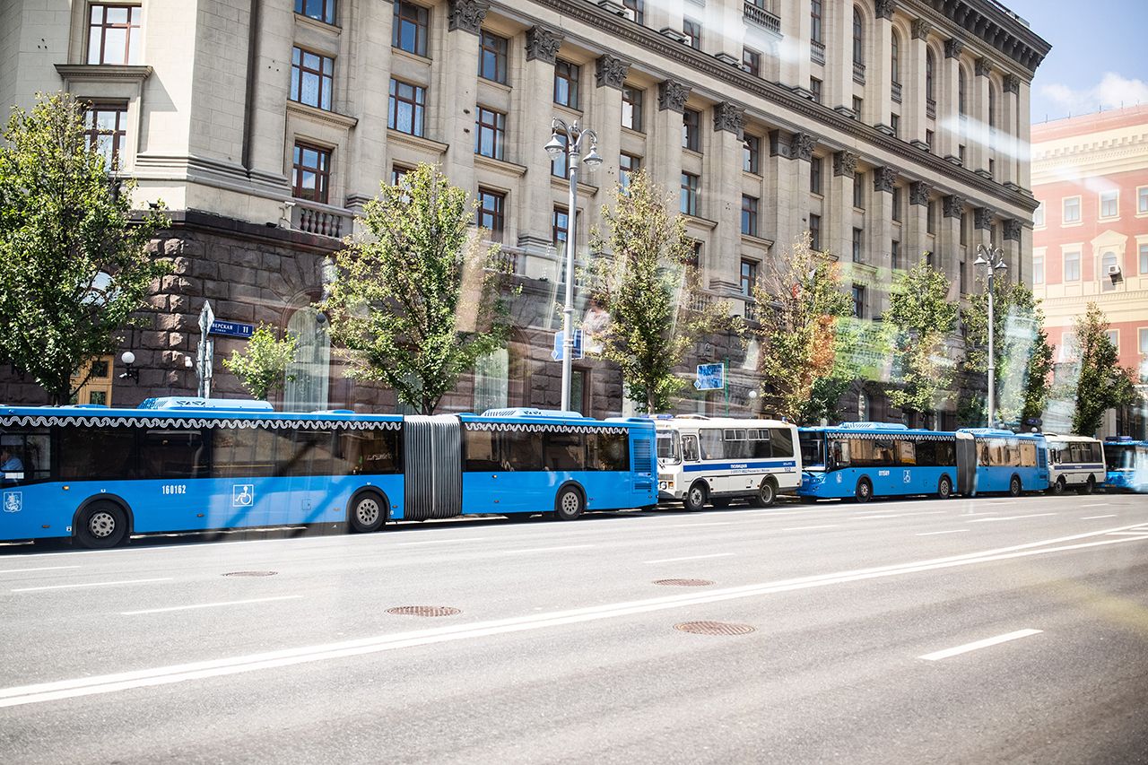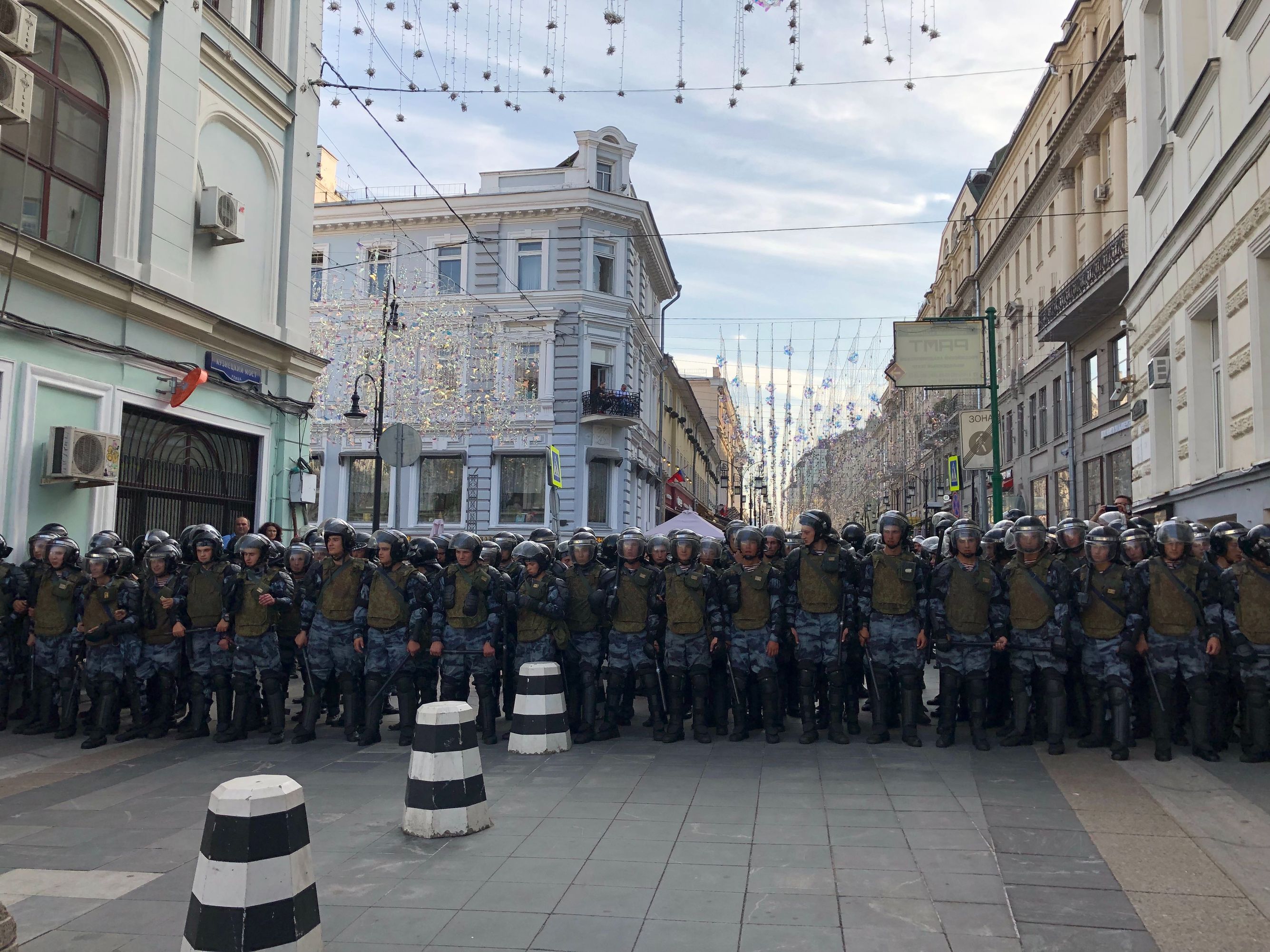 Оцените масштаб: сколько полицейских автобусов стоит вдоль Тверской.