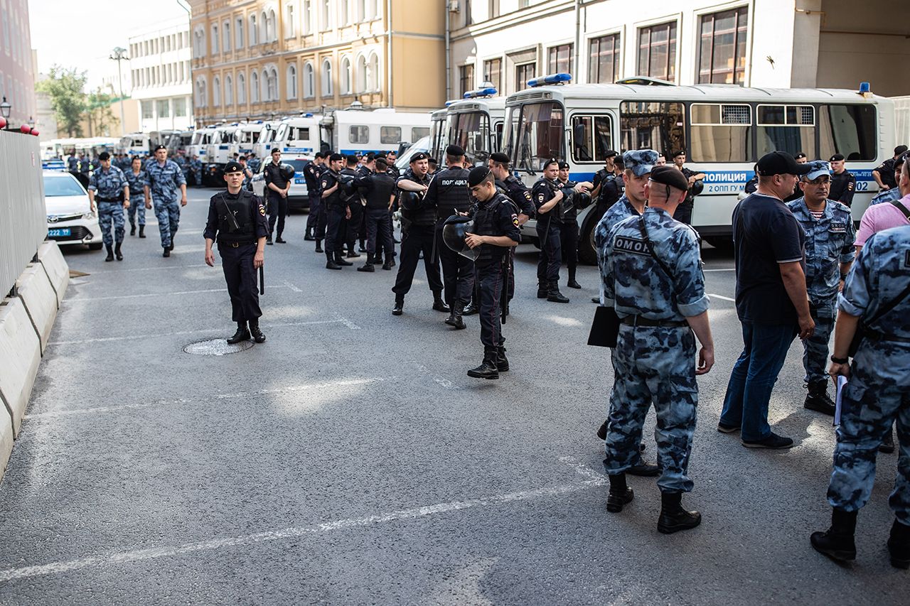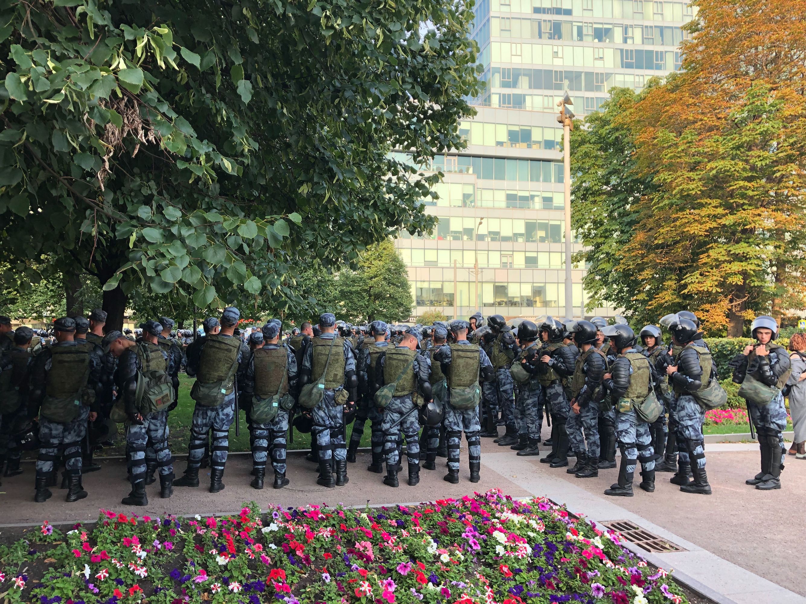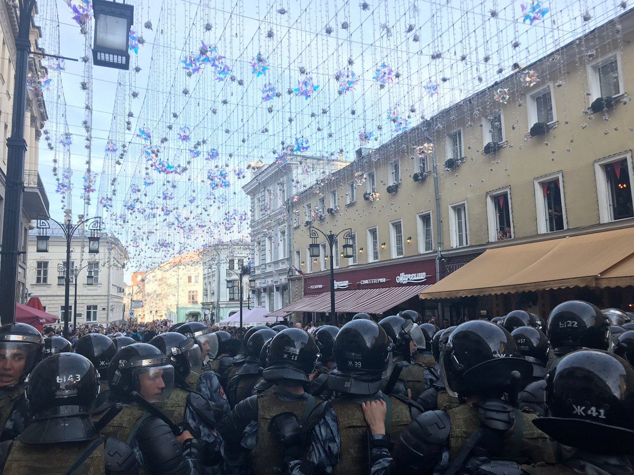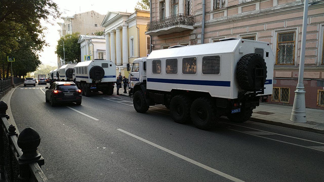 «Есть ощущение, что росгвардейцы сейчас меняют экипировку — надевают более тяжелую форму, подходящую для столкновений. В автобус заходят неэкипированные, выходят в уже в другой форме», — корреспондент «Сноба» с Тверской.