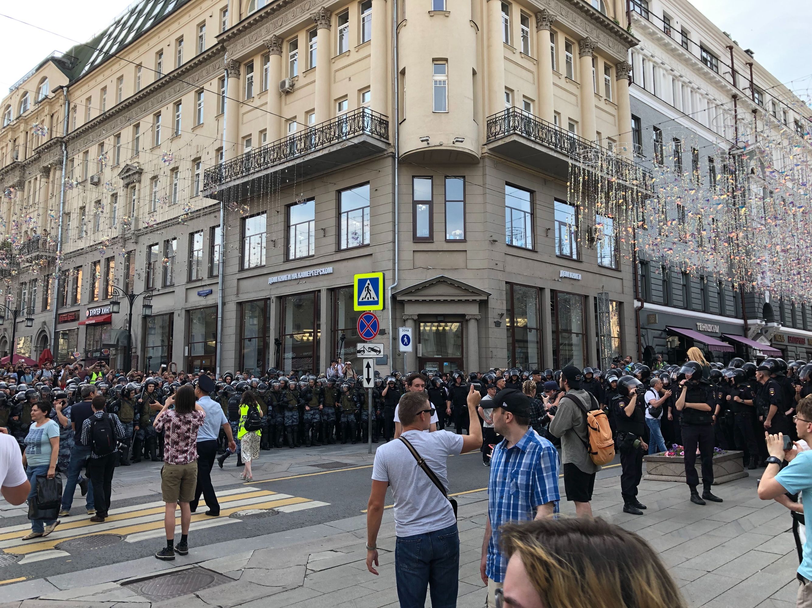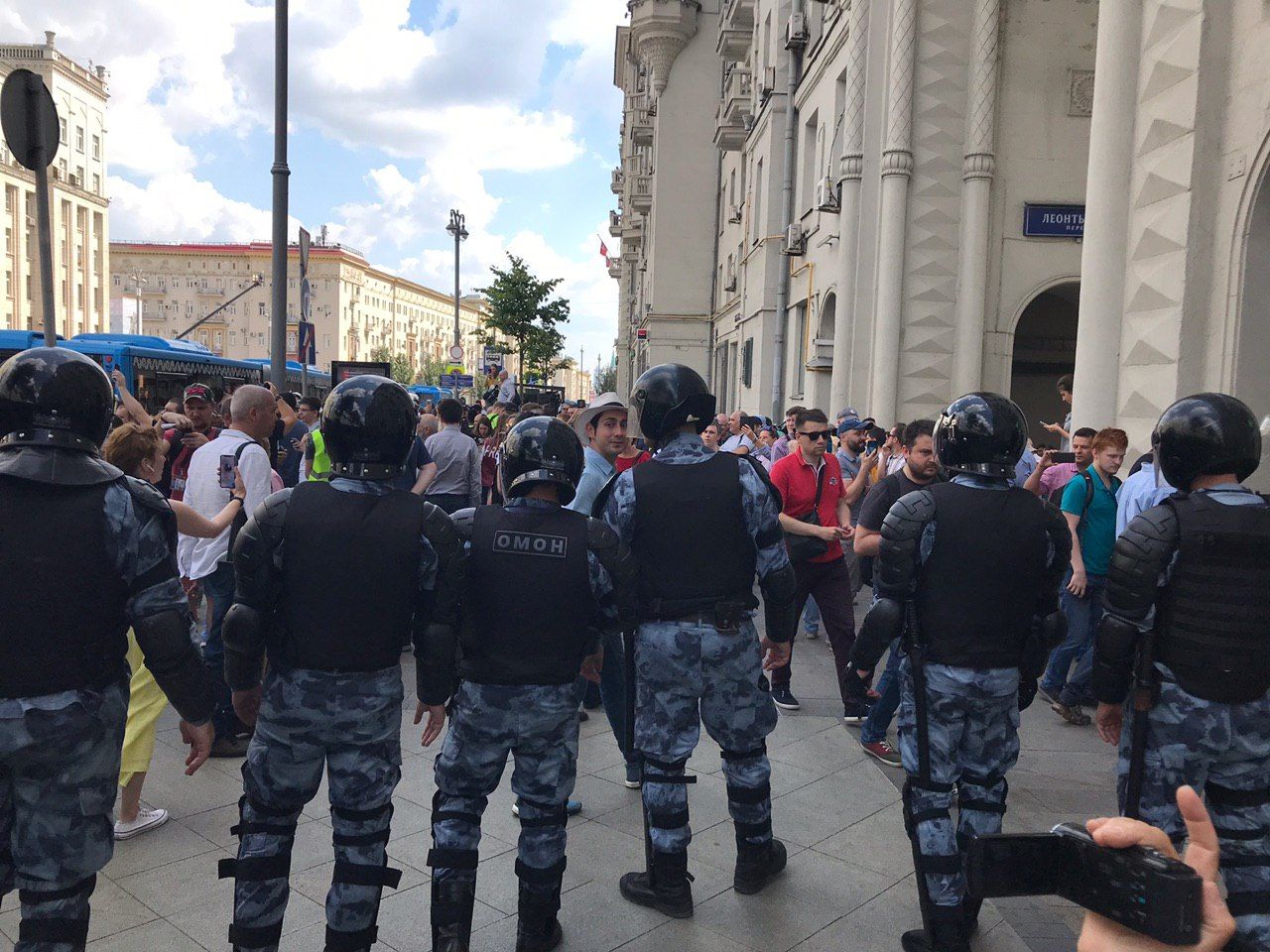 Корреспондент «Медузы»: полицейский в оцеплении сказал, что «после того как всех оттеснят в Леонтьевский переулок — Тверскую откроют».