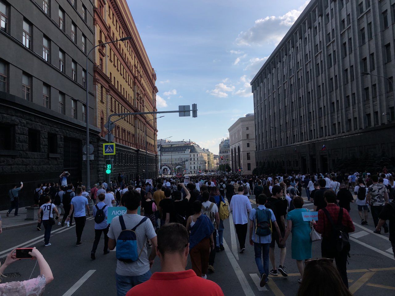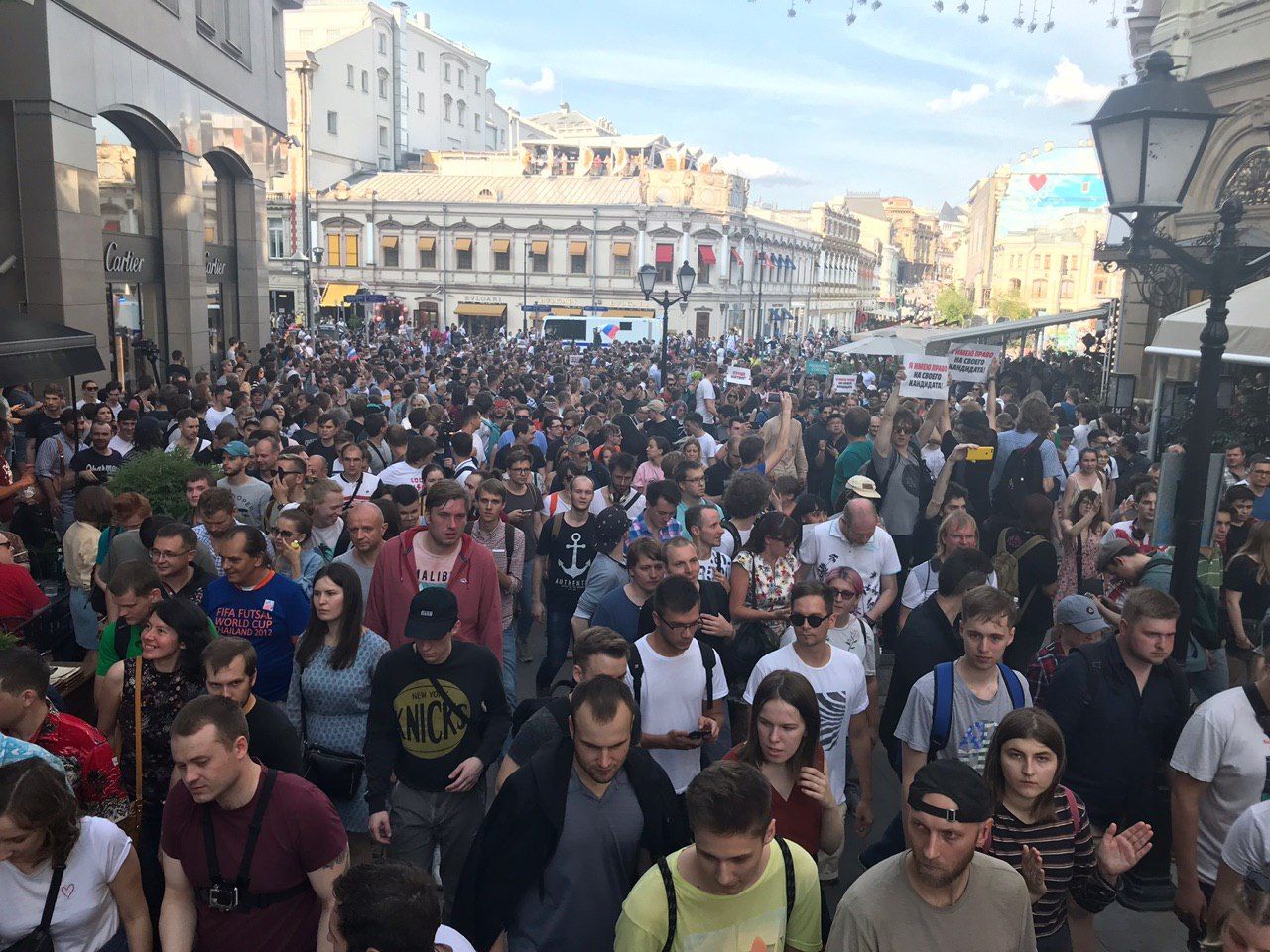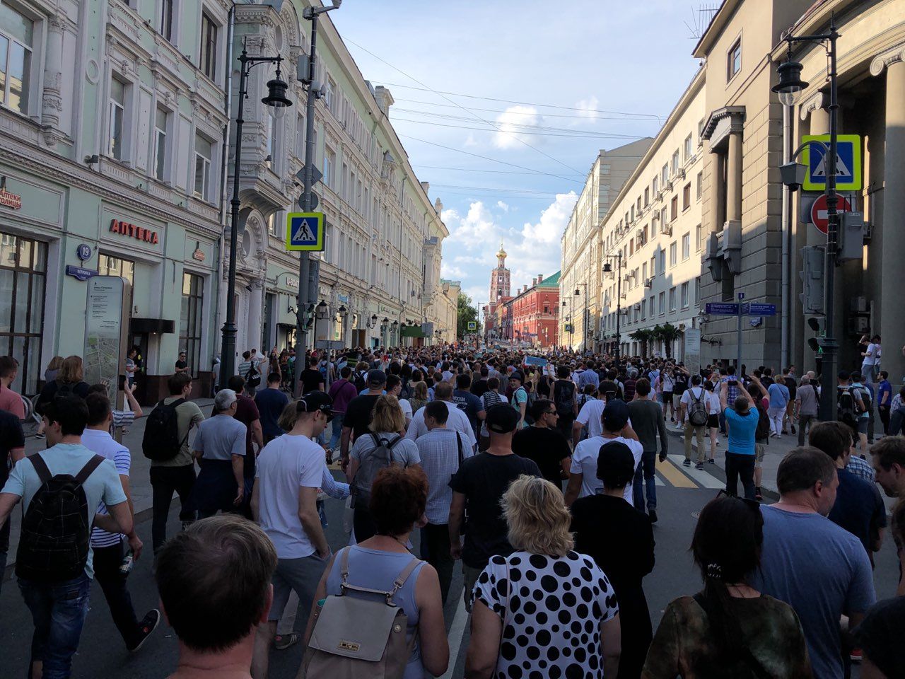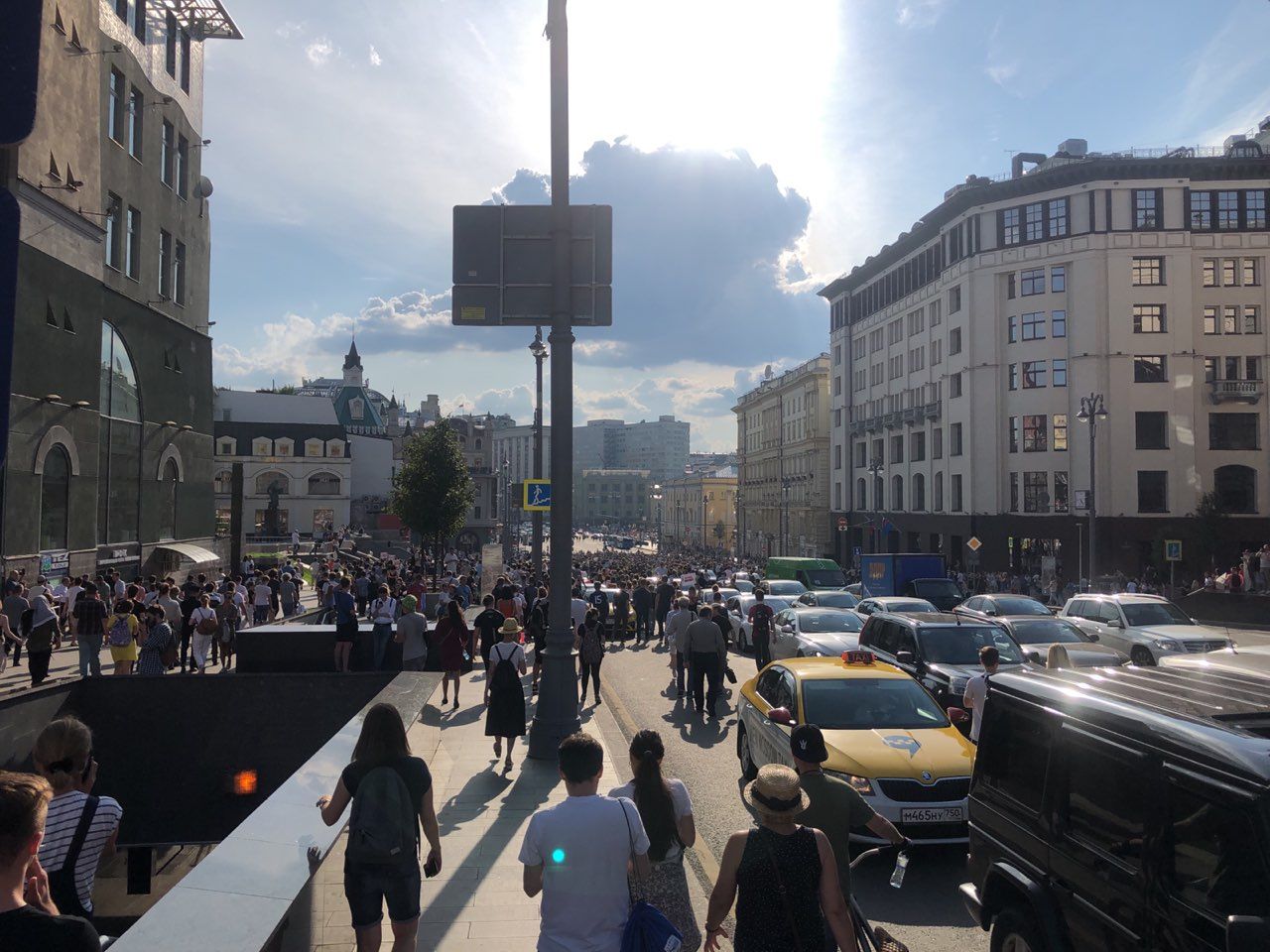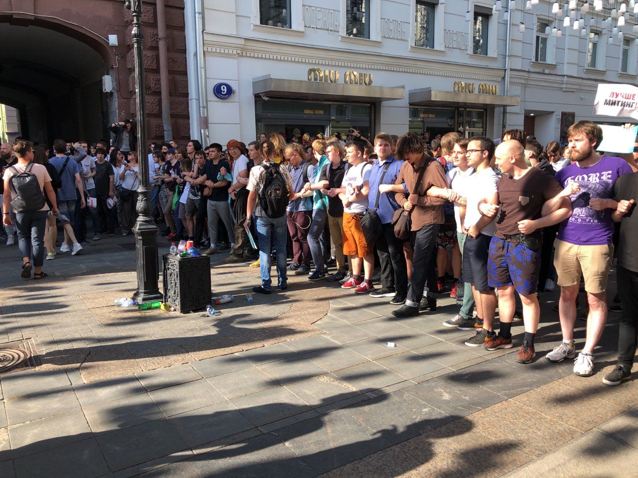 - Акция, которая была запланирована на Тверской улице у мэрии Москвы, быстро превратилась в шествие по соседним улицам и переулкам. В какой-то момент протестующие ненадолго перекрыли движение по Садовому.