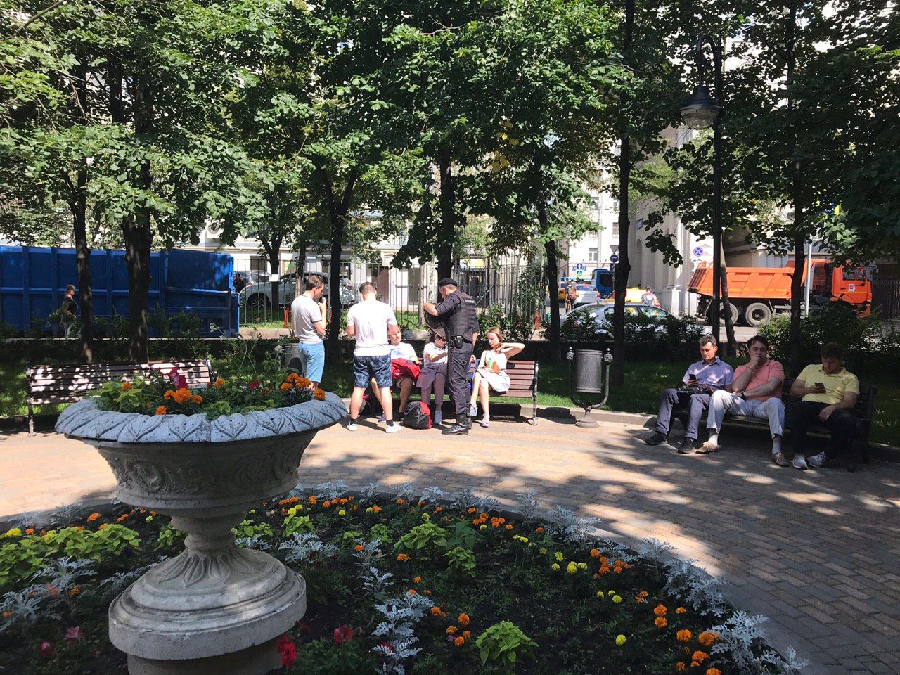 Полиция поднимает людей, сидящих на скамейках в парке — всех теснят к метро, сообщает «Новая газета».