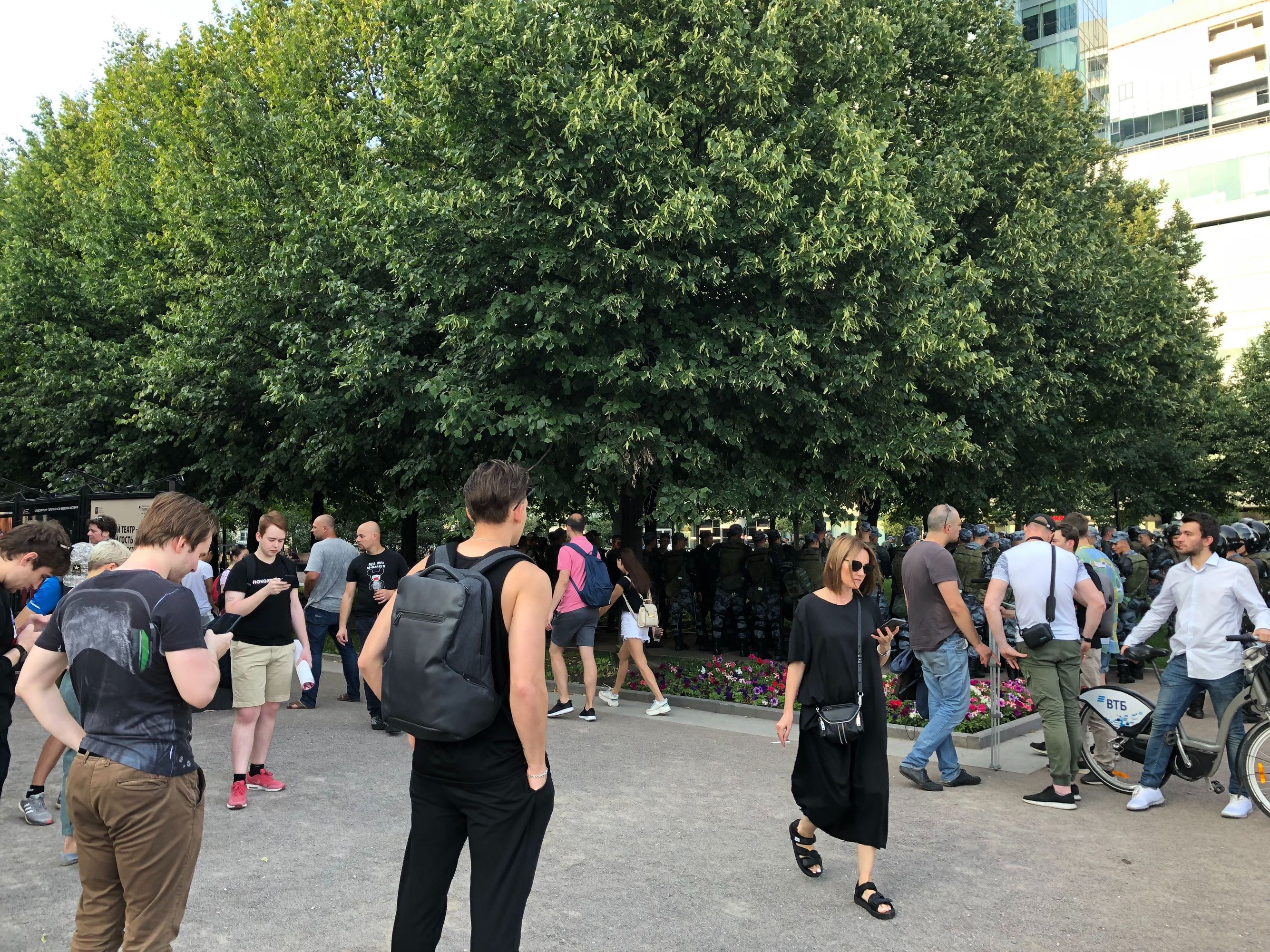 «Группы ОМОНа ходят со скучным видом по кругу. Ищут кого бы задержать», — сообщает корреспондент «Медузы»