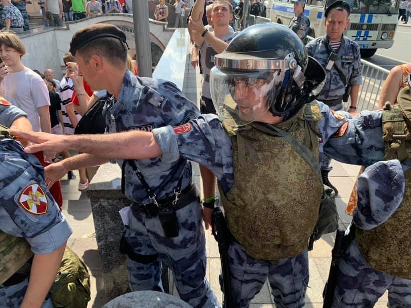 Несмотря на локальные «успехи» протестующих — в одном месте, например, была прорвана цепочка полиции — силы были очевидно неравны и их через час-полтора после начала акции все-таки оттеснили с площади. По крайней мере в Столешниковом переулке, по свидетельству Ани Гольдман, в результате действий Росгвардии произошла небольшая давка. Похожая ситуация была и на Пушкинской площади, где полиция просто перекрыла некоторые выходы из подземного перехода, в котором находится вход в метро.