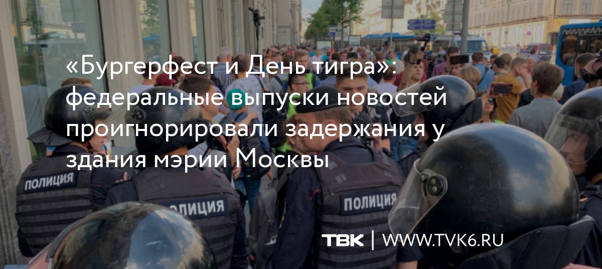 «Бургерфест и День тигра»: федеральные выпуски новостей проигнорировали задержания у здания мэрии Москвы