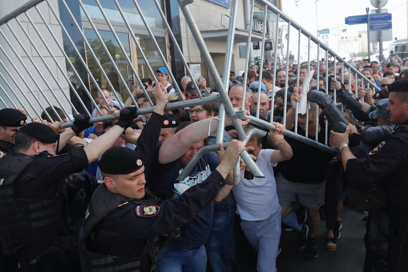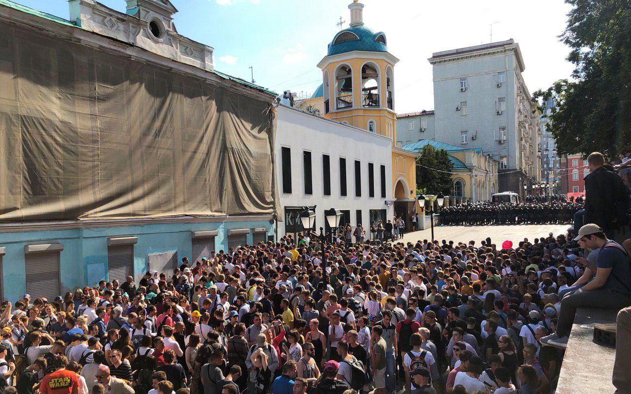 Несанкционированный митинг назначили на два часа дня 27 июля около мэрии Москвы на Тверской — на акцию своих сторонников призывали выйти незарегистрированные кандидаты в Мосгордуму. Уже утром вдоль всей улицы выстроилась шеренга из автобусов (призванных служить барьером, удерживающим толпу на тротуаре) и автозаков. Новопушкинский сквер и площадь перед бывшим кинотеатром «Россия» огородили забором.
