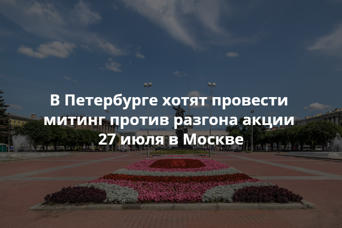 В субботу, 3 августа, в Петербурге хотят провести митинг за допуск московских независимых кандидатов к выборам и против разгона акции 27 июля в Москве. Организаторы подали заявку на проведение мероприятия и рассказали о ней в соцсетях.
