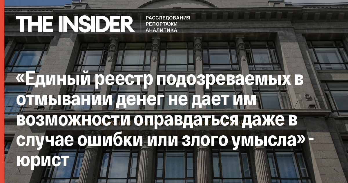 «Единый реестр подозреваемых в отмывании денег не дает им возможности оправдаться даже в случае ошибки или злого умысла» - юрист
